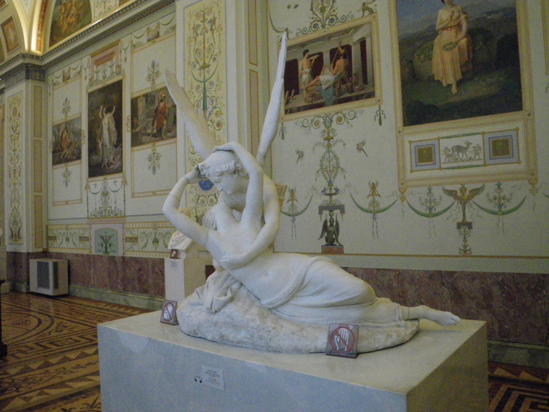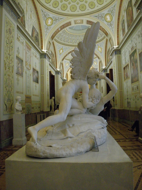To get an idea of the scale of the Hermitage, it has everything from Egyptian mummies to (when I was visiting) a special exhibit on Santiago Calatrava, sculptures from Michelangelo and Canova, paintings from Reubens, El Greco, Leonardo, and Raffaello all the way to Gaugin, Renoir, van Gogh and Picasso. In 1931, when the Soviet government wanted to raise cash, it sold a mere 21 paintings to Andrew Mellon, who donated them to the U.S. Government to form the start of the National Gallery in Washington DC. It would be easy to spend a week in the Hermitage, and see many new and interesting artworks every day. I am not that patient, so I only spent an afternoon. I enjoyed the collection of sculptures by Canova, including this bust of Napoleon and this sculpture of Eros and Psyche.