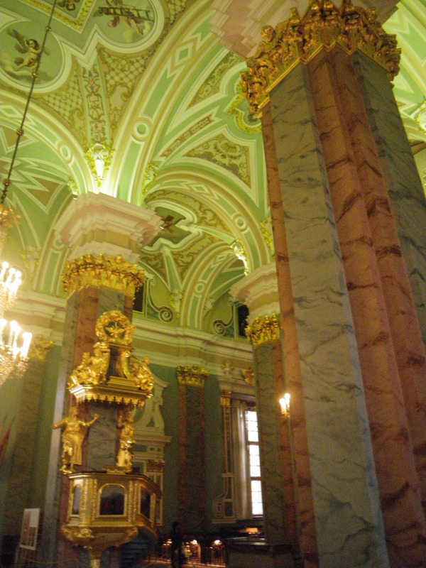 Inside the fortress is the Peter and Paul cathedral, where most of the Tsars since the 1700s are buried, including Peter the Great and the last Romanov, Nicholas II, and his family.