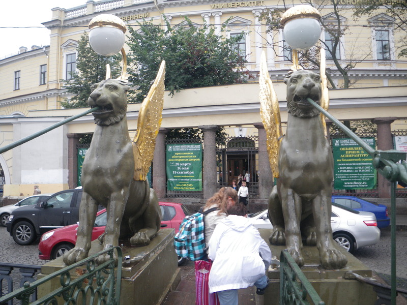 St. Petersburg has a number of canals, and is sometimes compared to Venice. In my opinion, St. Petersburg looks nothing like Venice, but I did take a boat ride along the canals. It was interesting in part because some of the bridges are very low -- signs on the boat say passengers must stay low when going under bridges, since it would be easy to bang a head on some of the lowest ones.