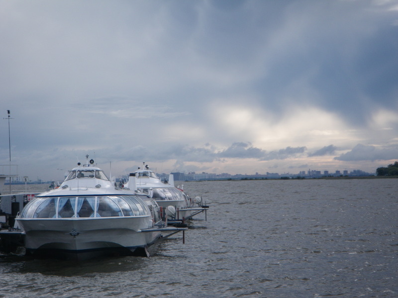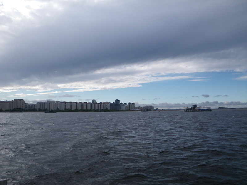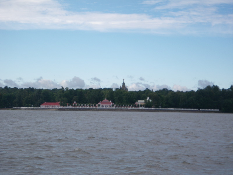 Long before the Hermitage became a Museum, Tsar Peter the Great built himself a villa on the shores of the Gulf of Finland, and called it Peterhof. Interestingly, Russian does not have a letter for 'H' (the letter that looks like 'H' is pronounced like 'N'), so the Russians call it Petergof. To get to Peterhof from St. Petersburg, I took a hydrofoil. The trip lasted less than my trip from Listvyanka to Irkutsk, also on a hydrofoil, but cost twice as much! Anyway, the views were nice, and it was nice to be out on the water.