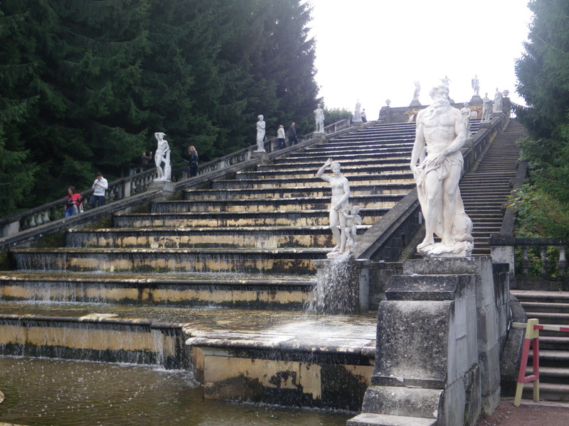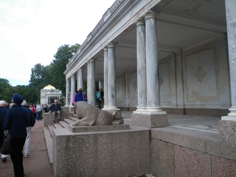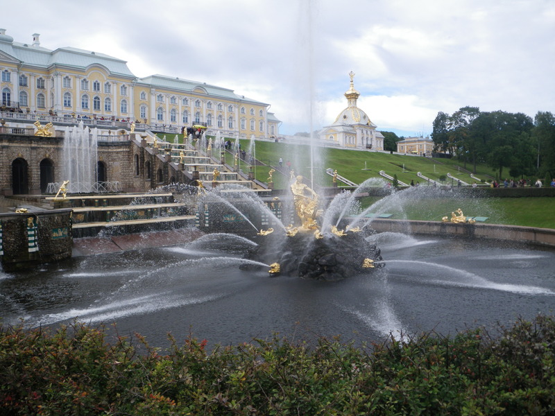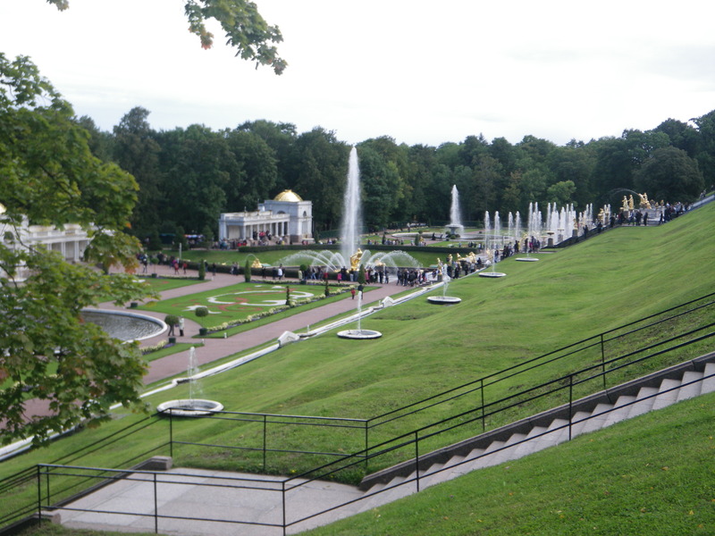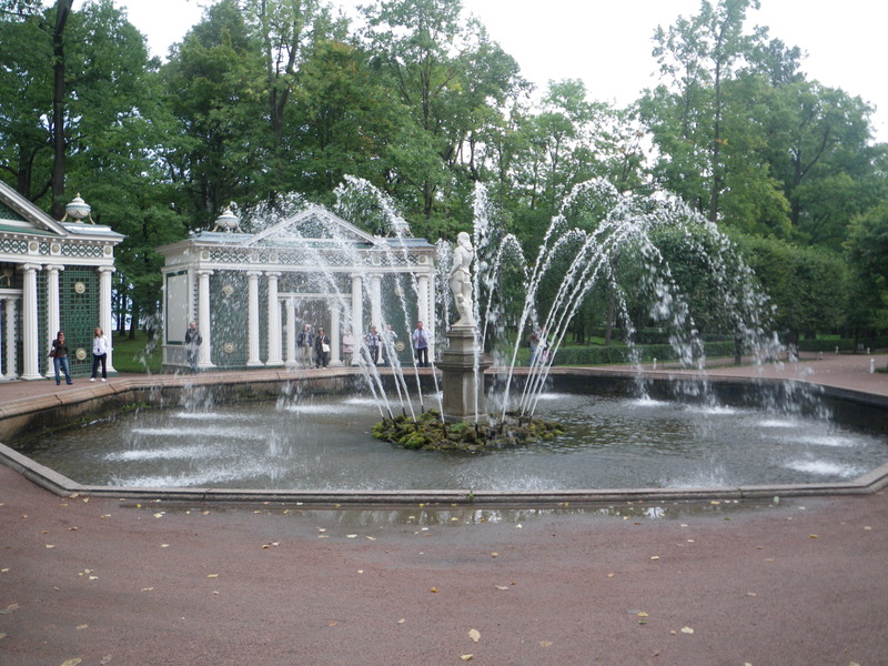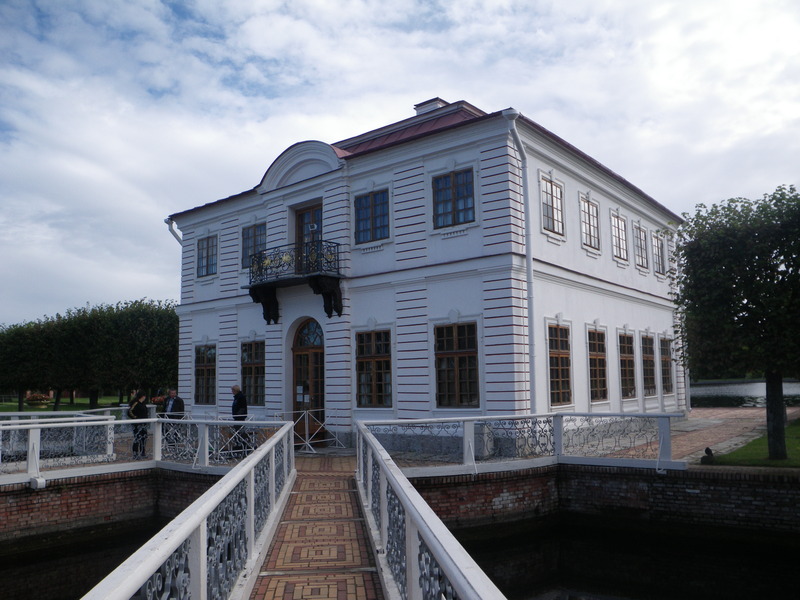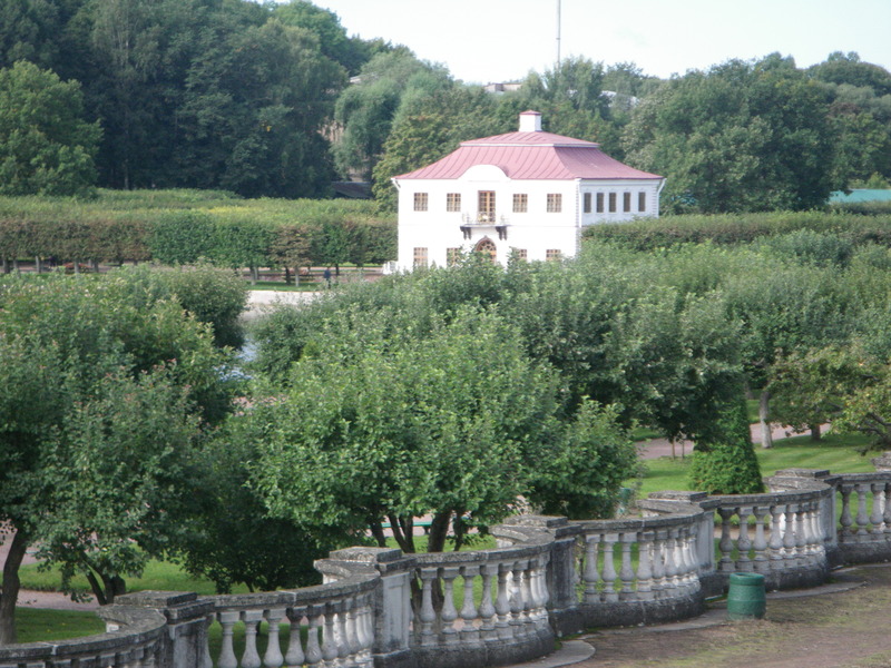 Peterhof is sometimes compared with Versailles. It has beautiful gardens filled with fountains, a relatively small palace, and several beautiful little pavilions.