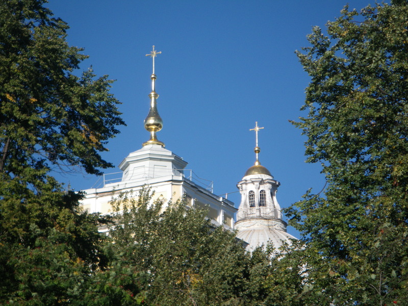Whoever designed the Cathedral of Our Lady of Kazan had been to Rome, Paris, or probably both. The colonnade resembles the colonnade outside the Vatican, and the dome reminded me of dome I had seen in Paris.