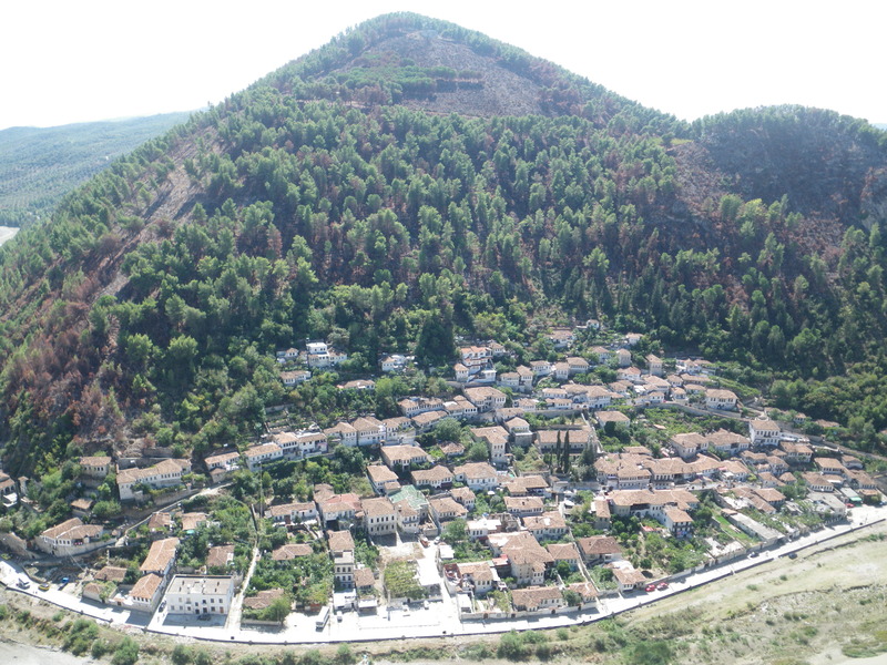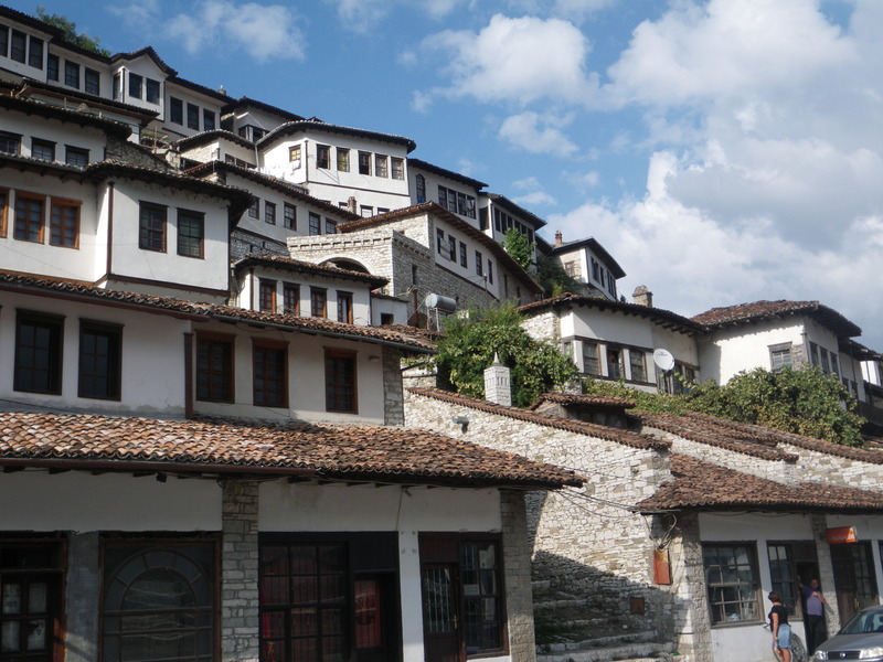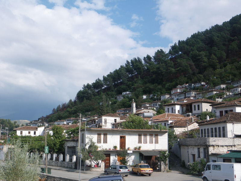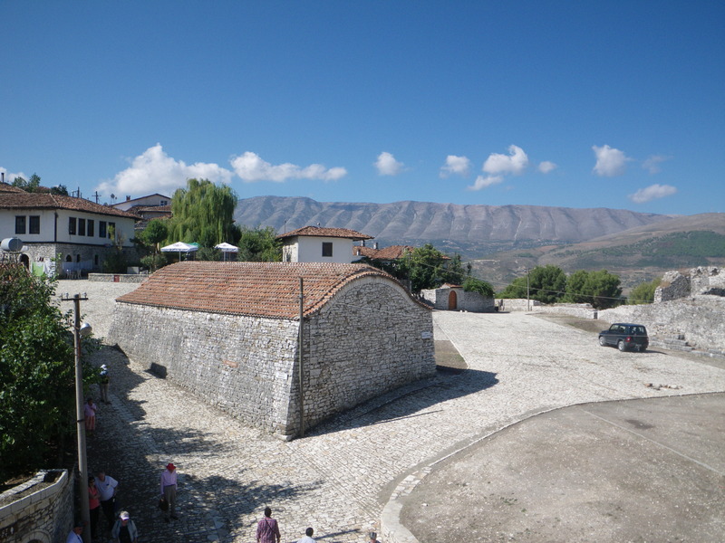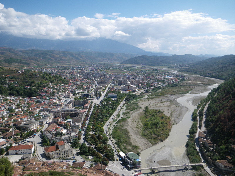 Berat is a mountaintop castle and a town in a very scenic location where the river Osum cuts between two mountains.