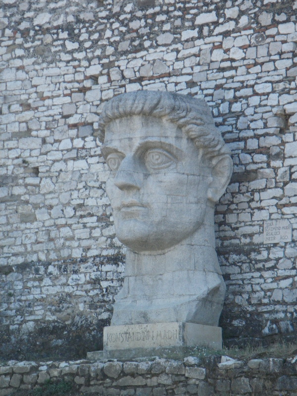 The castle has an ancient cistern to supply the garrison with drinking water, and a modern statue of Constantine the great.