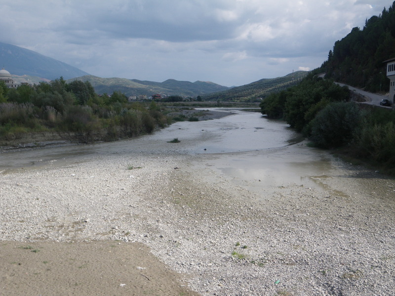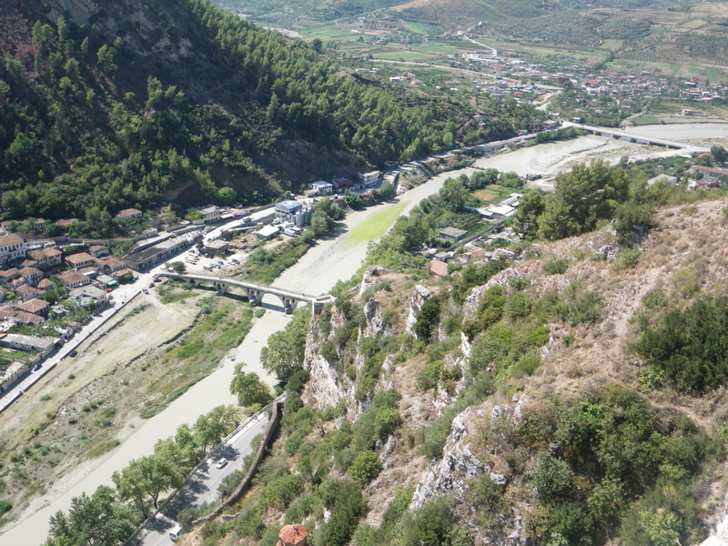 Far below the castle, the river Osum divides two 19th-century neighborhoods of Berat.
