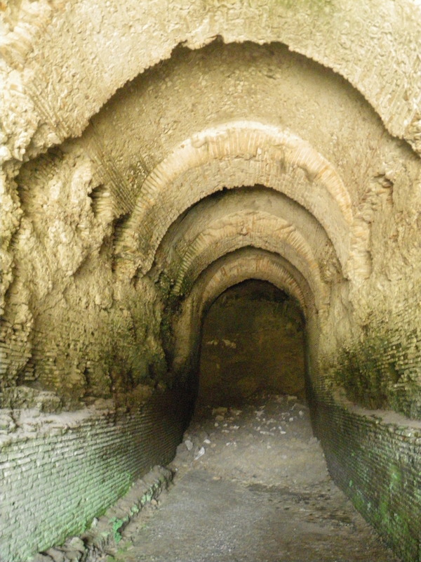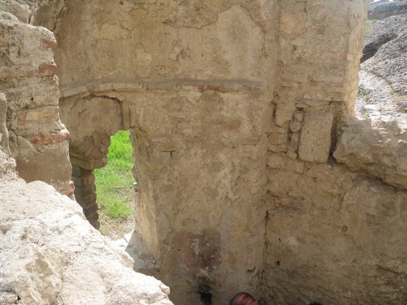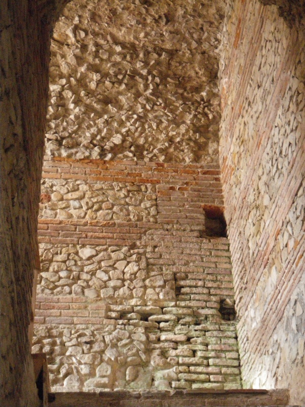 The walls of the amphitheater were built with alternating stones and bricks. Apparently, this makes the construction more resistant to earthquakes. In these pictures, the bricks that are whole are probably modern, the bricks that are worn and broken are probably original.