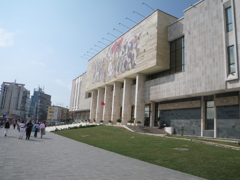 This is the National History museum, which I visited and found well done. Skanderbeg square used to have an 8-m tall statue of Enver Hoxha, but it was knocked over as part of a demonstration in the early 1990s that led to the overthrow of communism in Albania -- and I learned all this in the museum, which also has older artifacts, all the way back to prehistoric times.