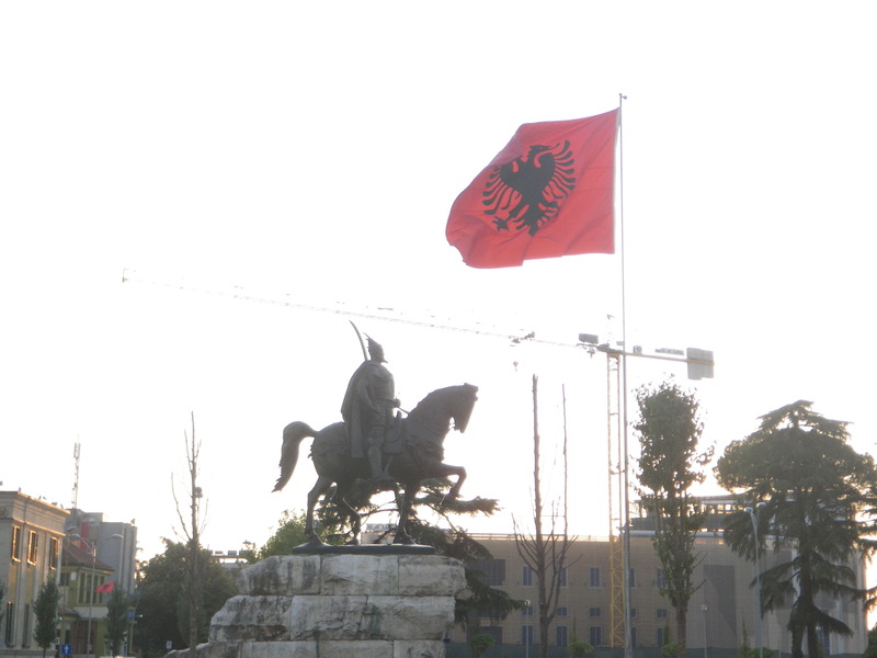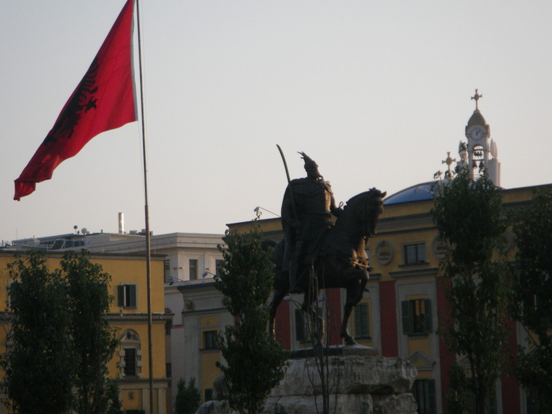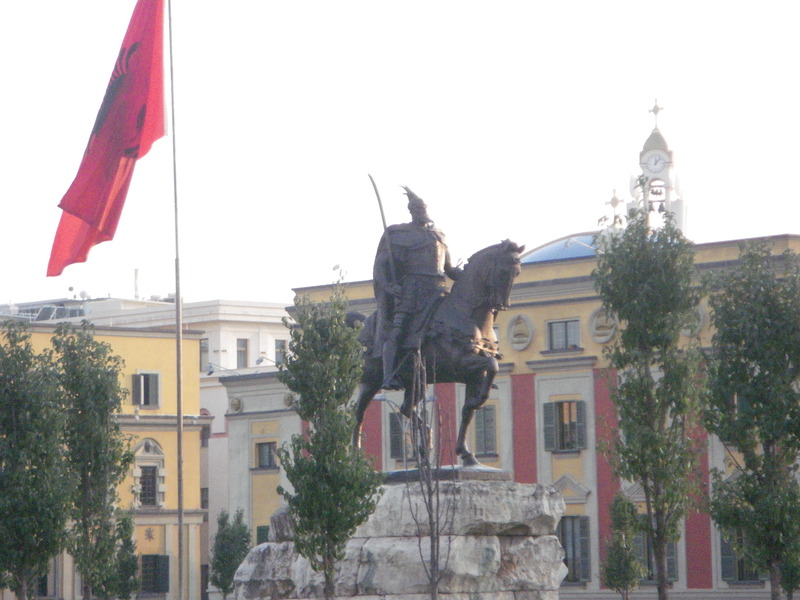 Tirana has been the capital of Albania since the 1920s. It is a fairly modern city whose center is a large square named after the Albanian national hero, George Kastrioti Skanderbeu, also known as Skanderbeg or Scanderbeg. This is Skanderbeg square, with a statue to the man himself and many of the most important buildings of Tirana surrounding it.