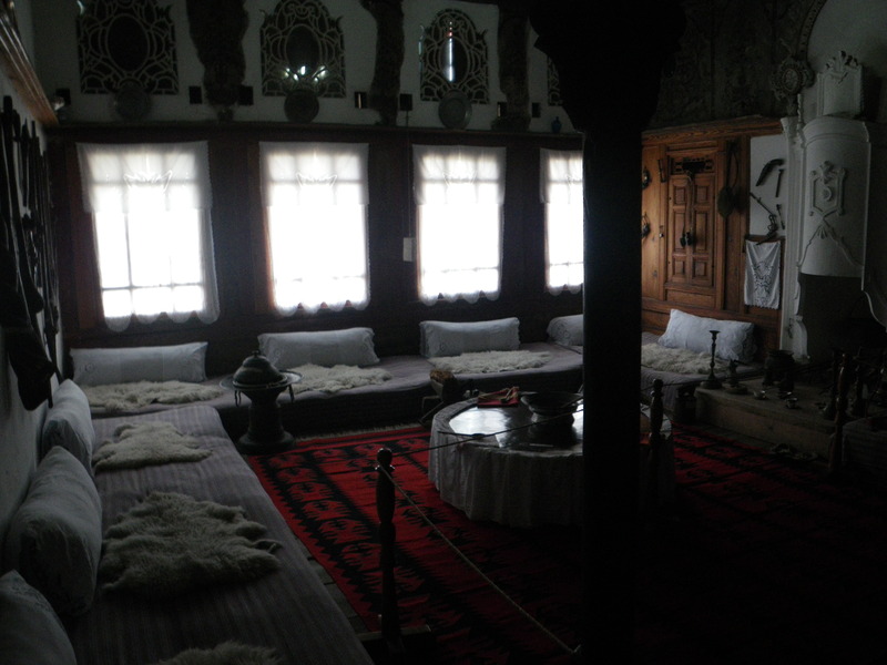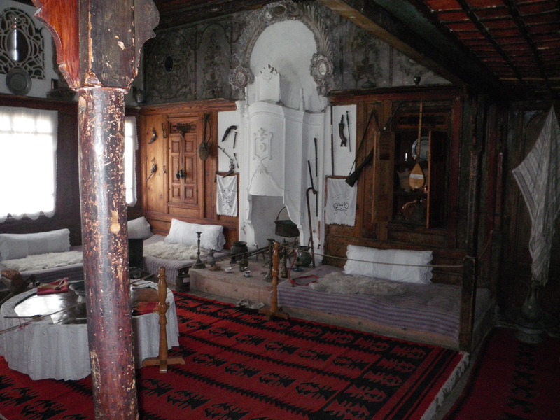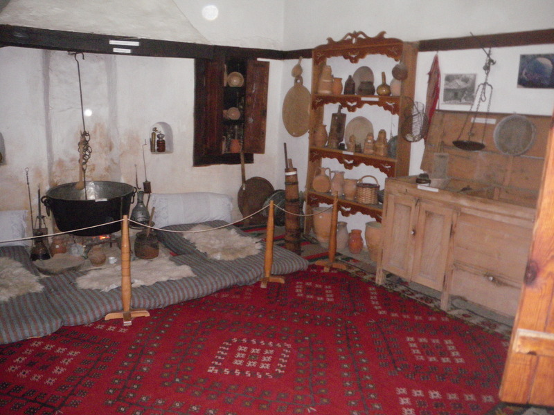 The ethnographic museum in Kruje is housed in a 250-year old house built by a wealthy family inside the castle walls. The displays on the ground floor include smaller millstones used for grinding grain by hand, and larger millstones used with water power for grinding grain, and driven by donkeys to press olives.